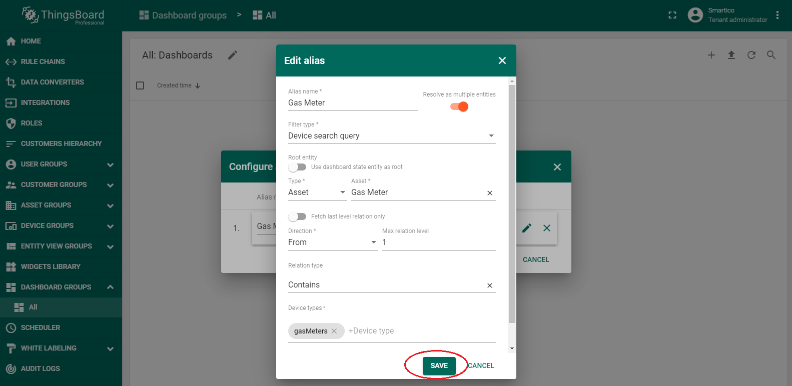 If everything was done correctly, in DASHBOARD GROUPS → All you will see the new dashboard Ultrasonic Residential Smart Gas Meter LoRaWAN “Smartico G-1.6” that was provided at the beginning of the guide.